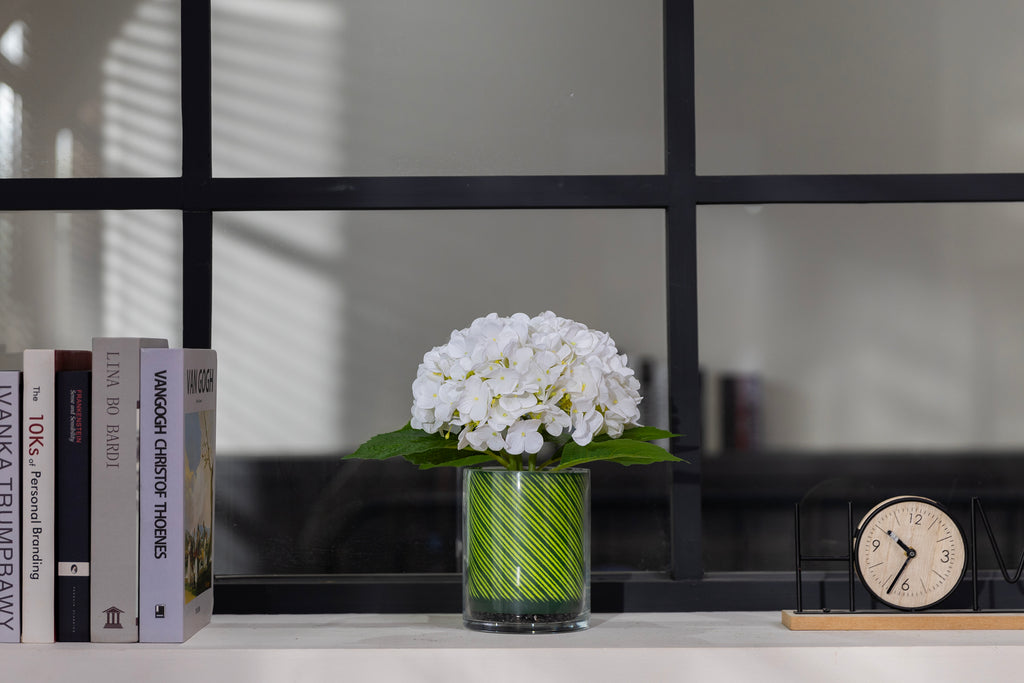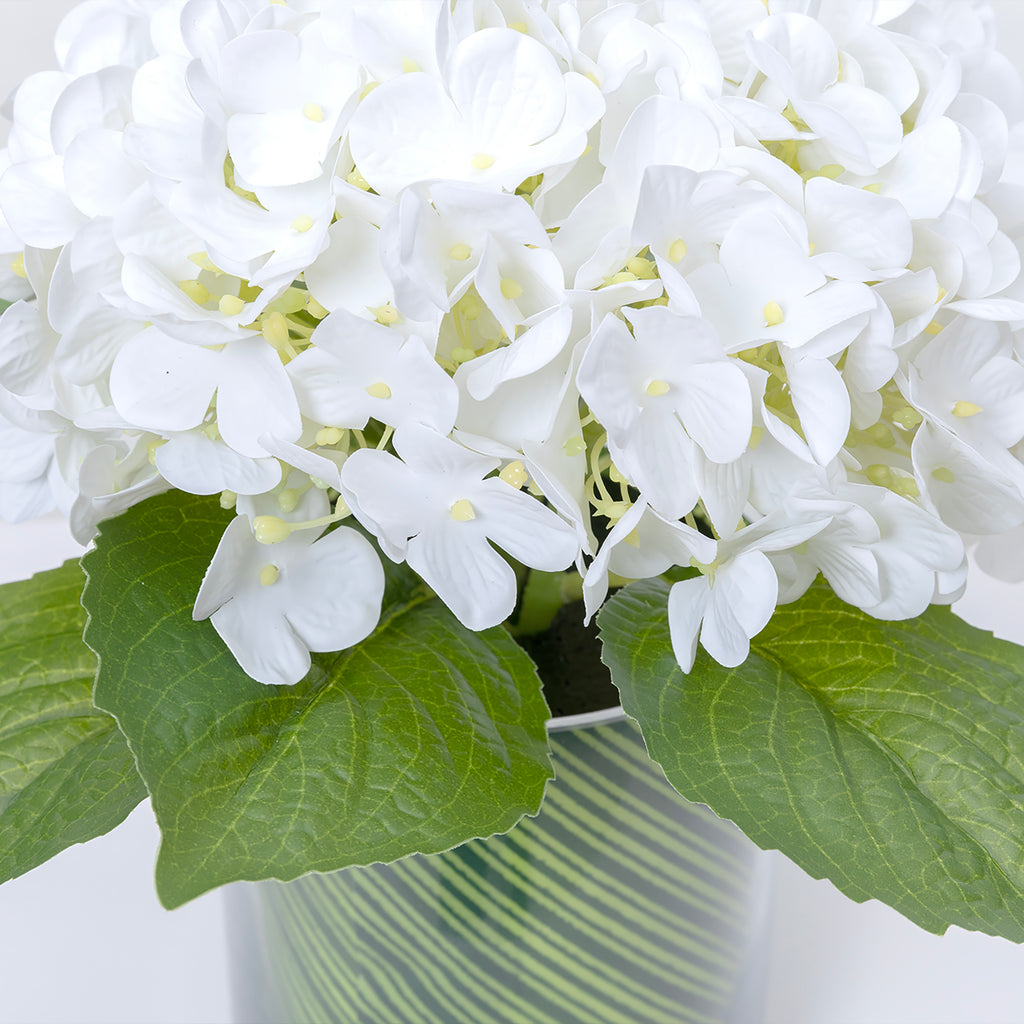 2-Pack 12.5" Tall Faux White Hydrangea Floral Arrangements in Circular Vases | Real-Touch Flowers in Glass Vase