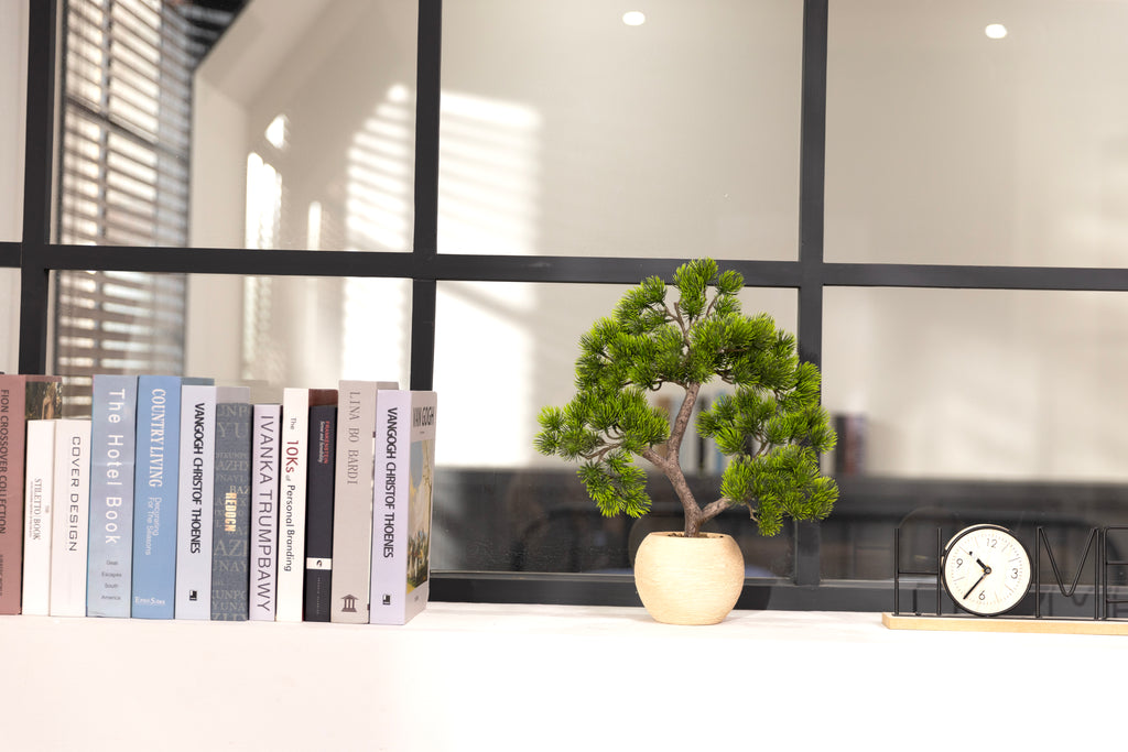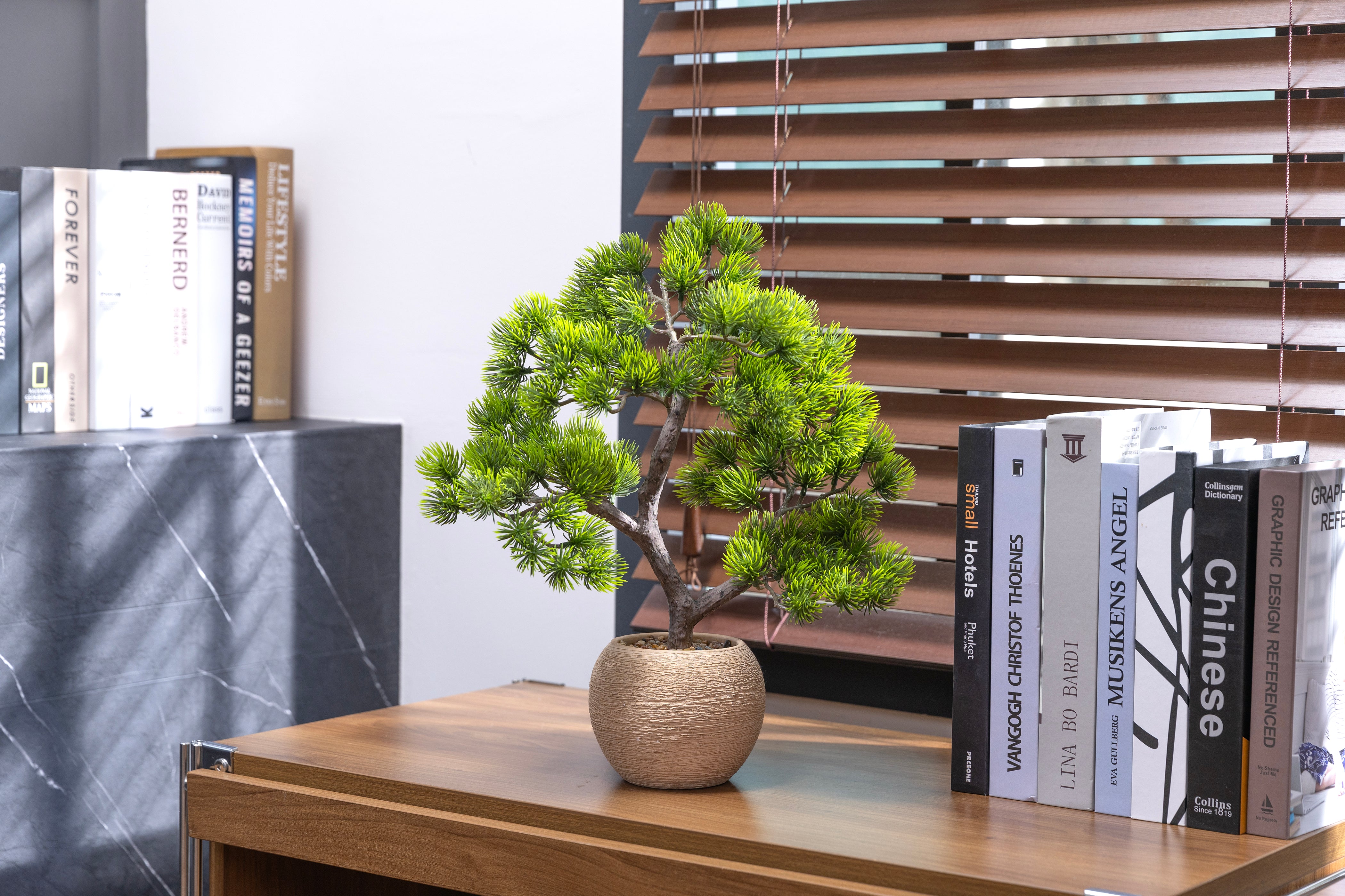 The bright, green real touch leaves of this artificial bonsai tree have a natural appearance. Dress up your bookshelf or side tables with these beautiful plants and trees. Pair it with a lamp or book for a completed look. Simple yet sophisticated these green fake trees and plants enhance the interior decoration of your home. The stunning artificial plants or trees in ceramic planters is a must buy element for a well-appointed abode. Place it in your living areas, bedrooms or any room that needs an alluring glance. Highlight your favorite spaces with the help of these artificial indoor fake trees boasting foliage designed in a palette of year-round evergreens - all of which feel real to the touch. These table-top artificial trees will handsomely elevate either a home, office or any environment.