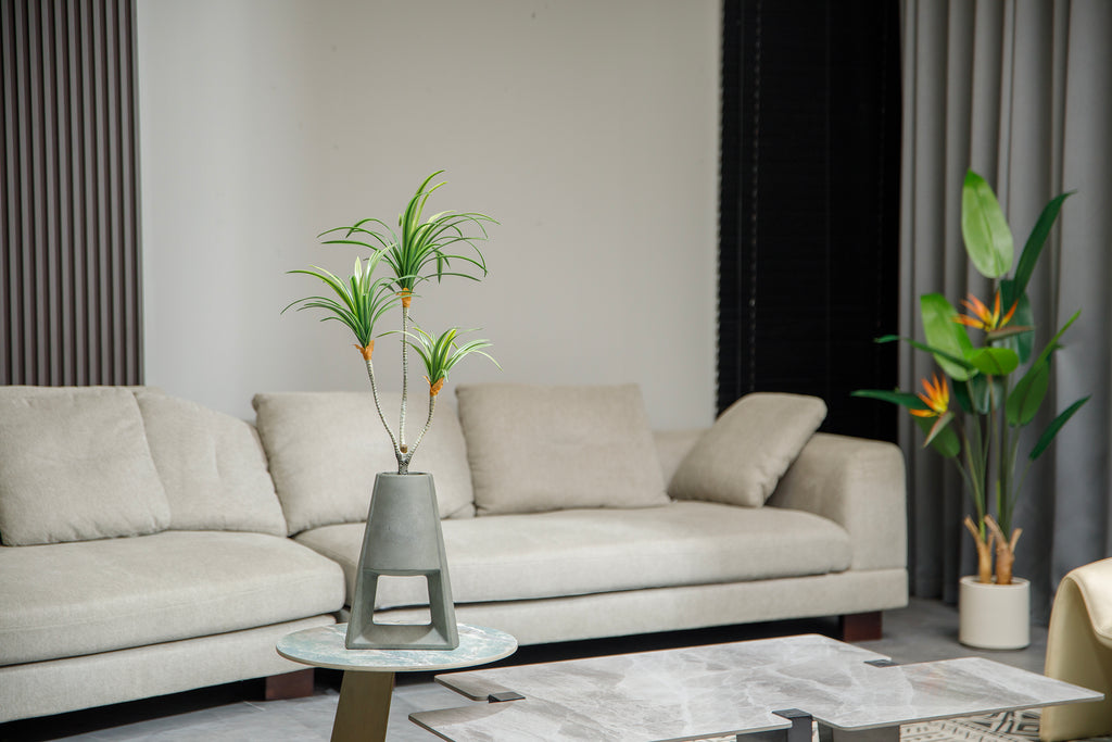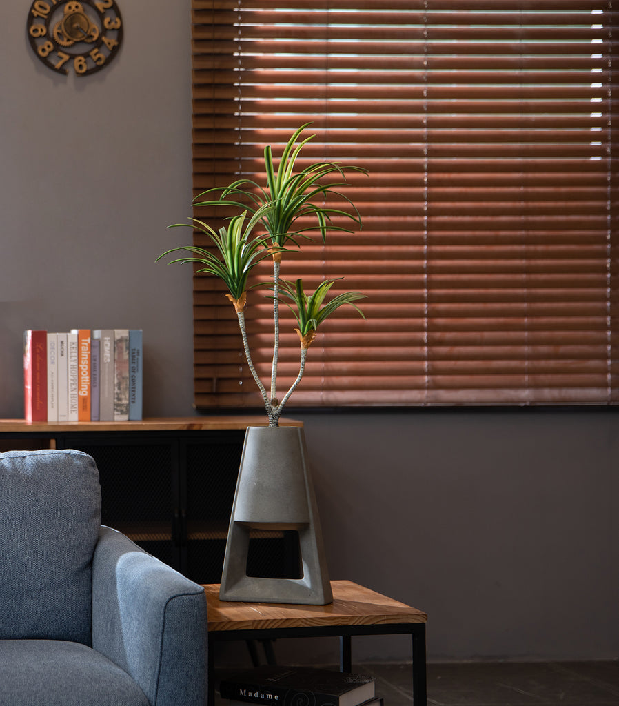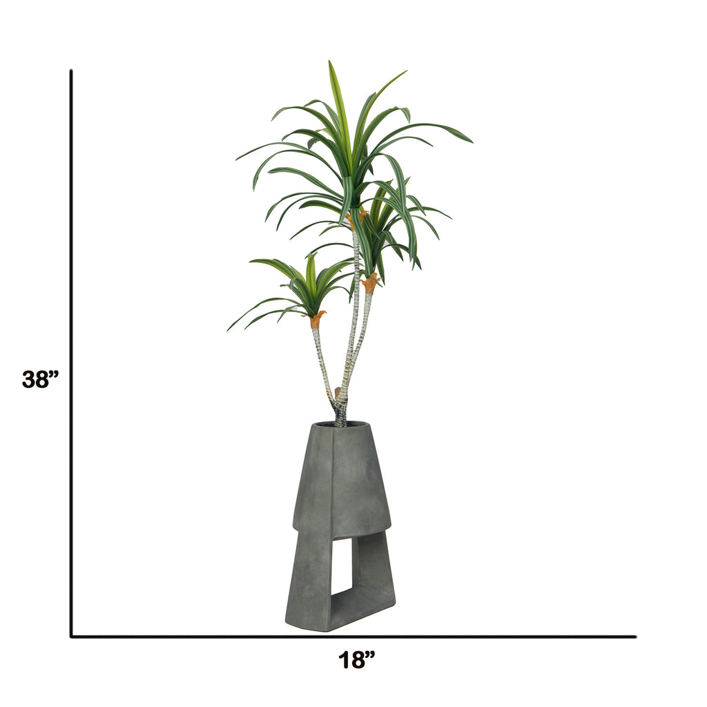 38" Faux Real Touch Artificial Dracaena [Dragon Tree] in Grey Contemporary Modern Planter Pot