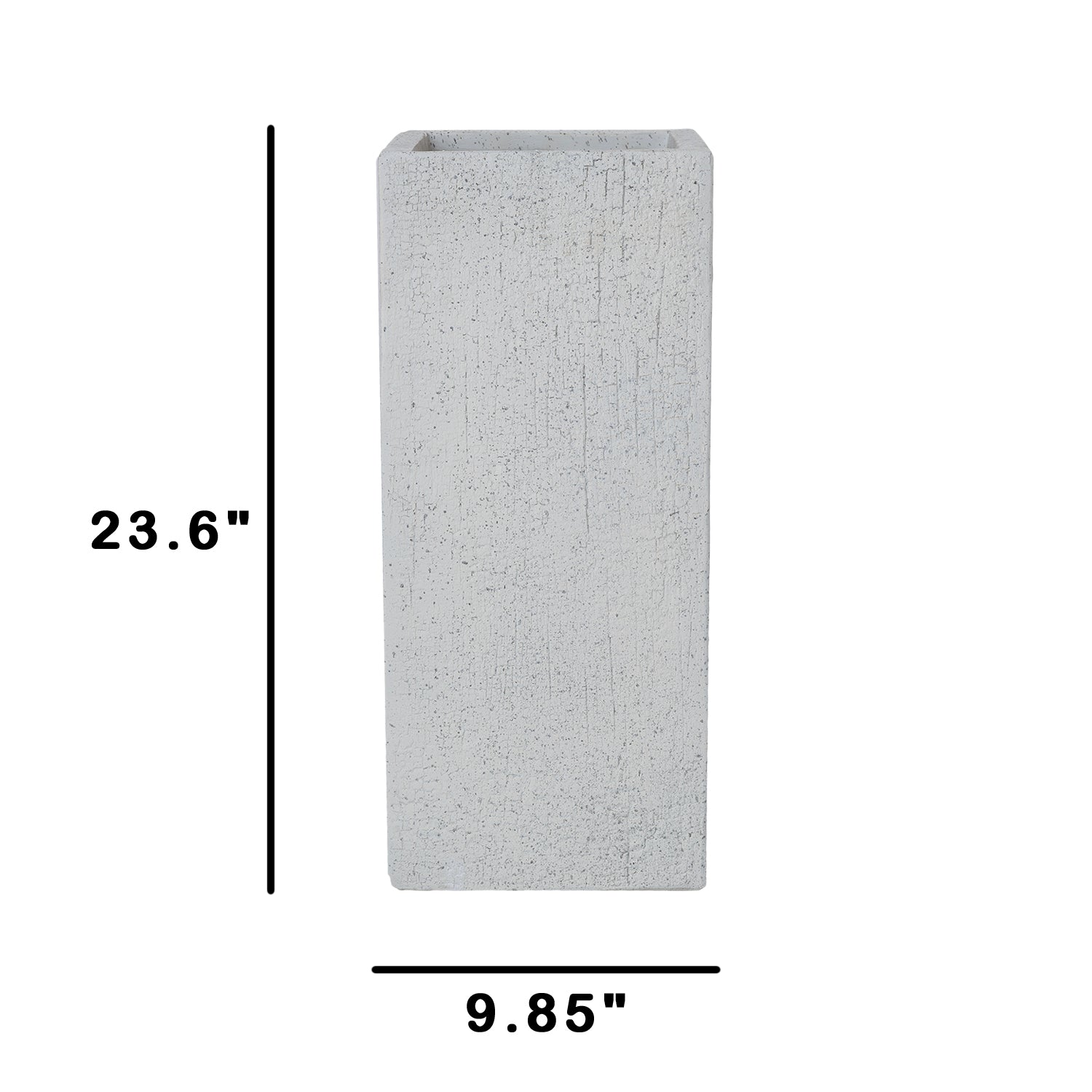 24" Tall Indoor/ Outdoor Square Beige Fiberstone Planter