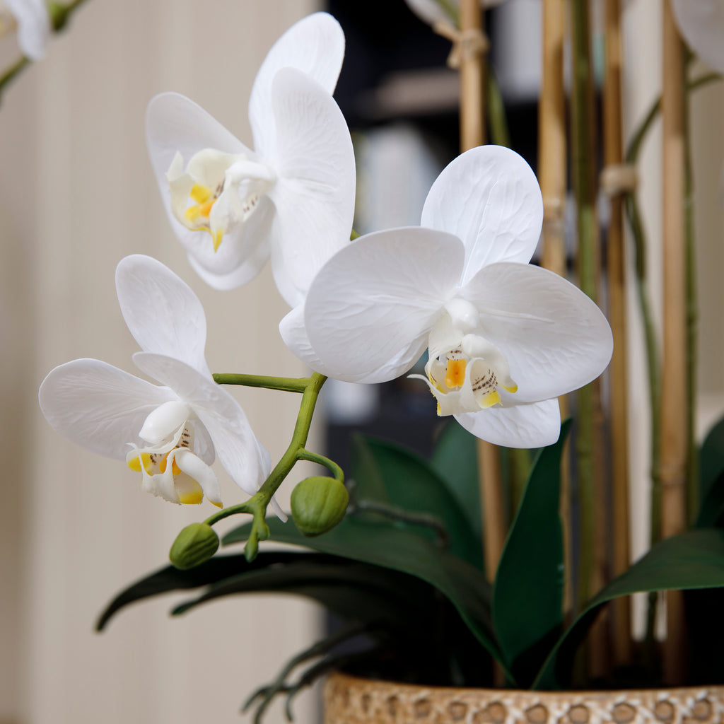 29" White Orchid Arrangement in a Tan Ceramic Planter | Real Touch White Moth Phalaenopsis Orchids by Fiori Sempre
