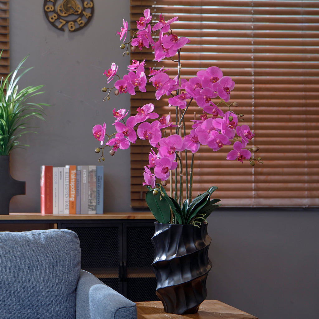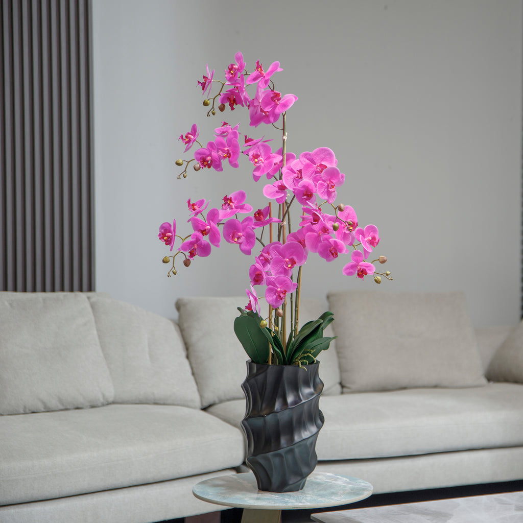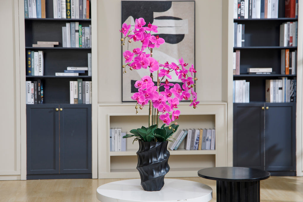 43" Purple Orchids in a Tall Black Planter | Real Touch Purple Moth Phalaenopsis Orchids by Fiori Sempre