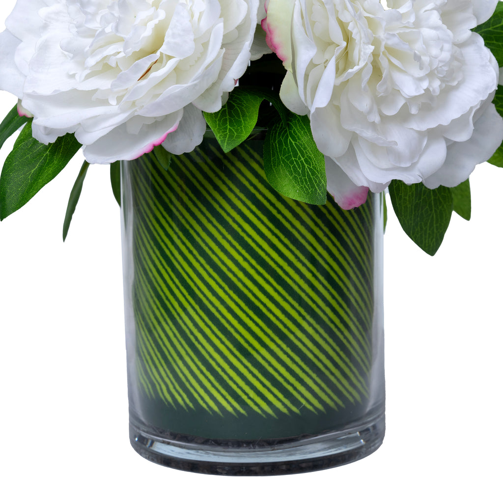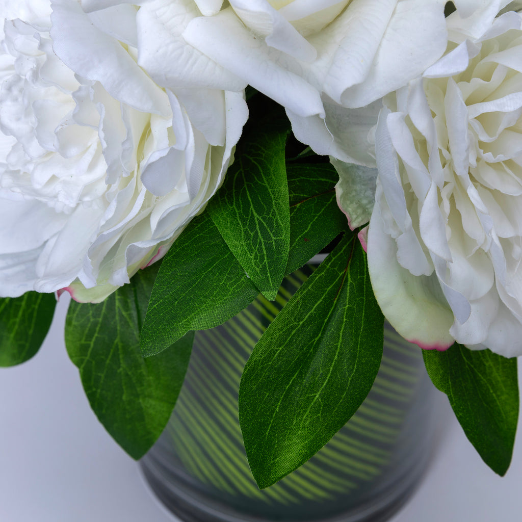 2-pack 13" Tall Faux White Peony and Rose bouquet in Circular Vase | Real touch flowers in a glass vase