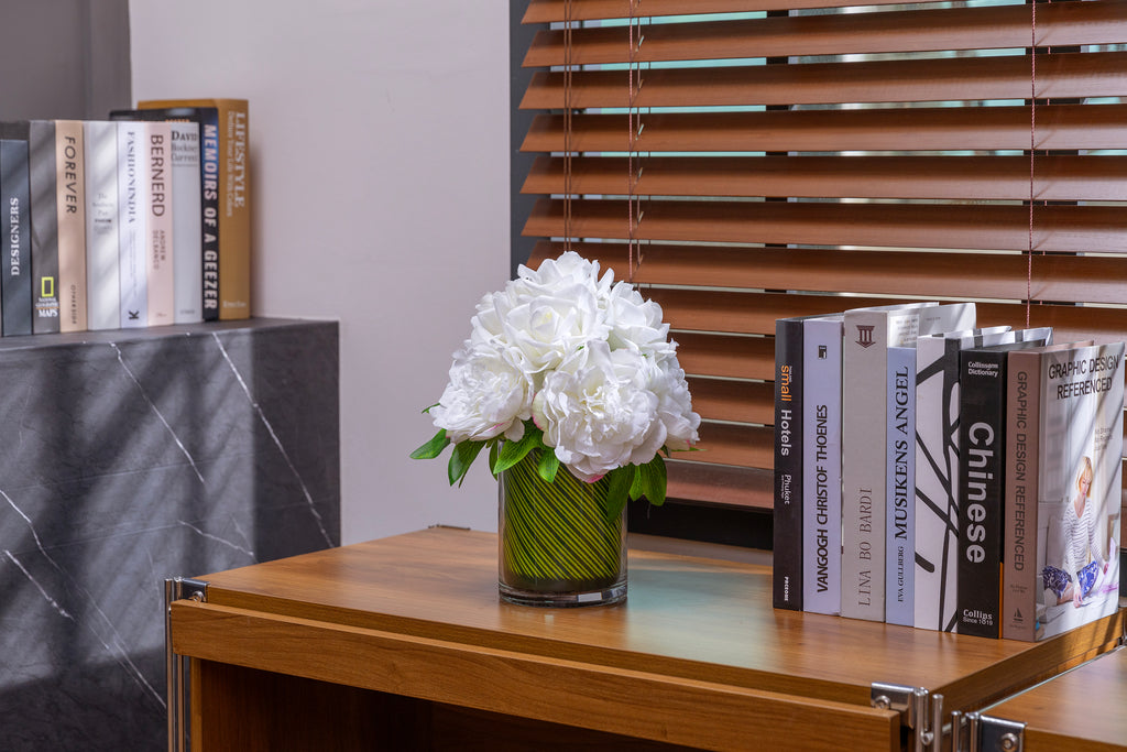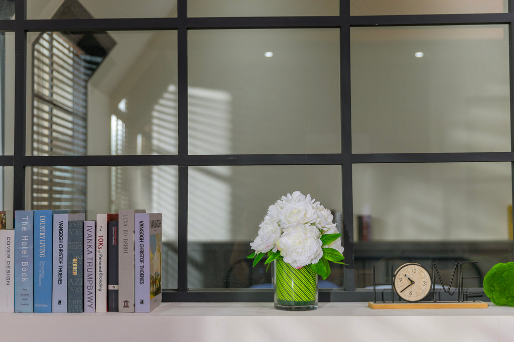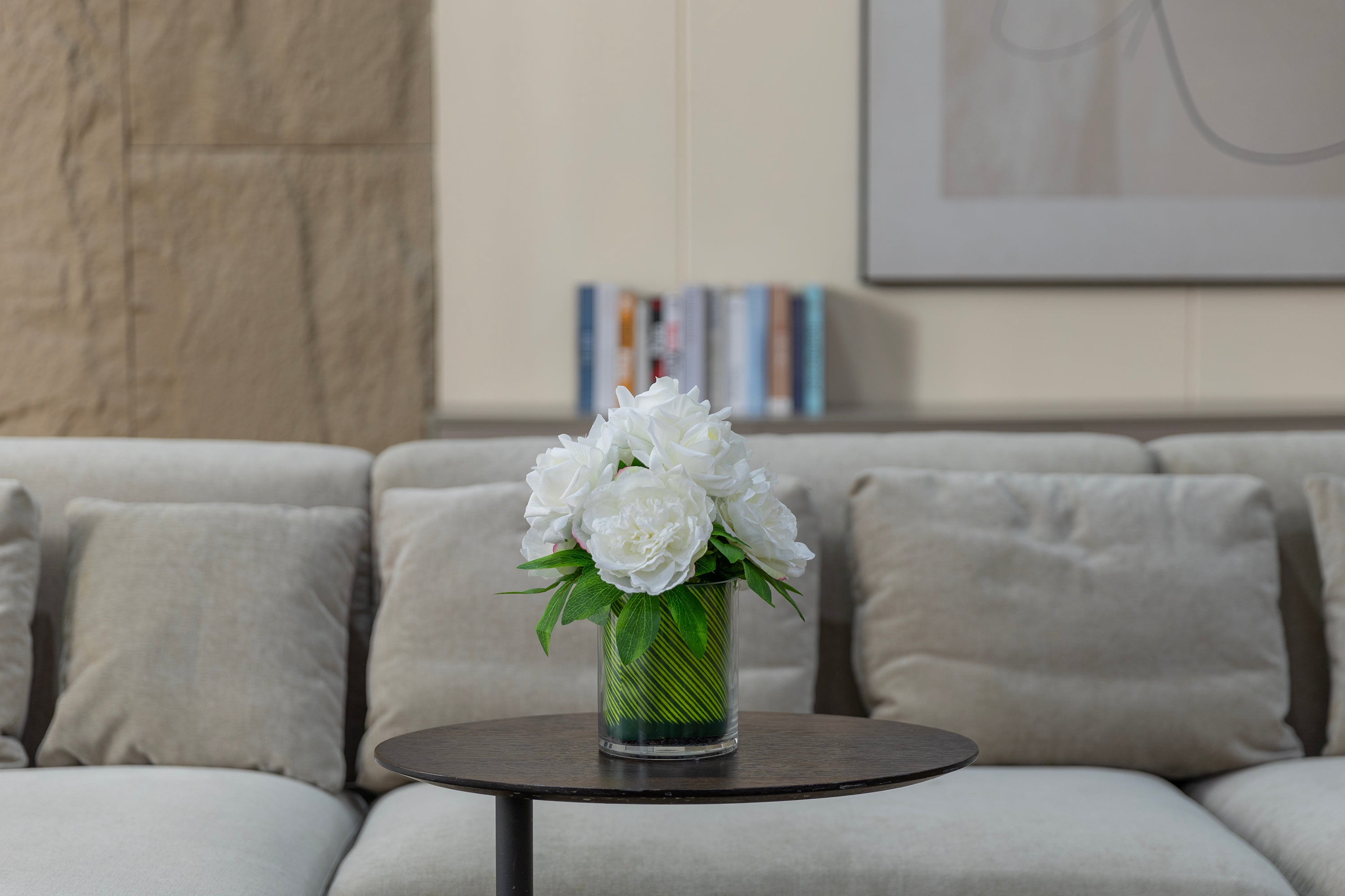 The bright, white real-touch leaves of this faux floral arrangement create a natural, lifelike appearance. Perfect for dressing up bookshelves or side tables, this beautiful arrangement adds a touch of elegance to any space. Pair it with a lamp or a book for a complete look. Simple yet sophisticated, these fake flowers enhance your home’s interior décor. The stunning artificial flowers in glass vases are a must-have for any well-appointed home. Place them in your living areas, bedrooms, or any room that needs a little extra charm. Highlight your favorite spaces with these artificial indoor flowers, designed in a palette of spring-inspired colors that feel real to the touch. These tabletop floral arrangements will effortlessly elevate your home, office, or any space in need of a touch of beauty.