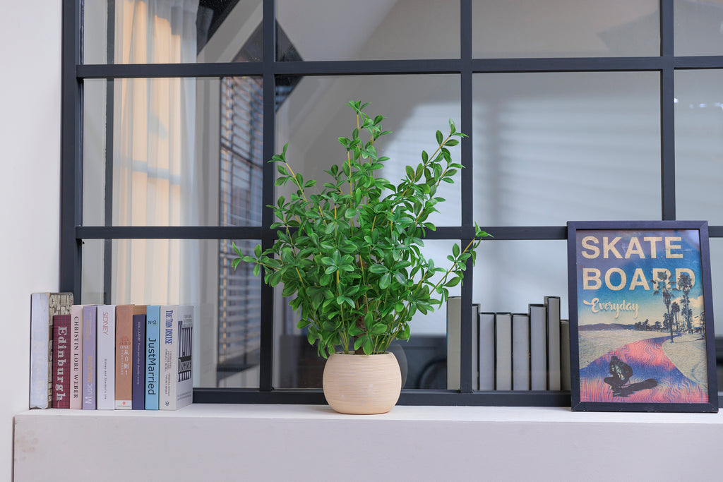 Featuring bright, lush green leaves that look and feel real, this faux olive tree adds a natural touch to your décor without the hassle of upkeep. Perfect for styling your bookshelf, side table, or any corner that needs a little extra flair, these elegant plants pair beautifully with a lamp, book, or other decorative accents for a polished look.