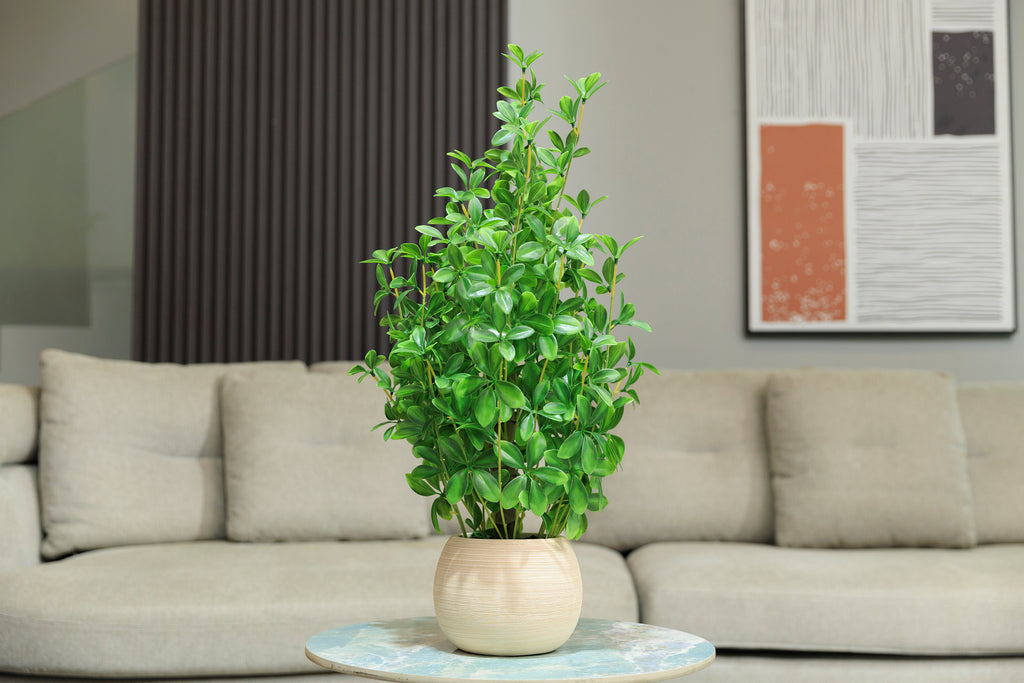 Simple yet sophisticated, these green faux trees are the ultimate interior décor upgrade. Planted in stylish ceramic planters, they’re a must-have for creating a cozy, well-appointed home. Whether you place them in your living room, bedroom, or office, these artificial trees bring a fresh, year-round evergreen vibe to any space.