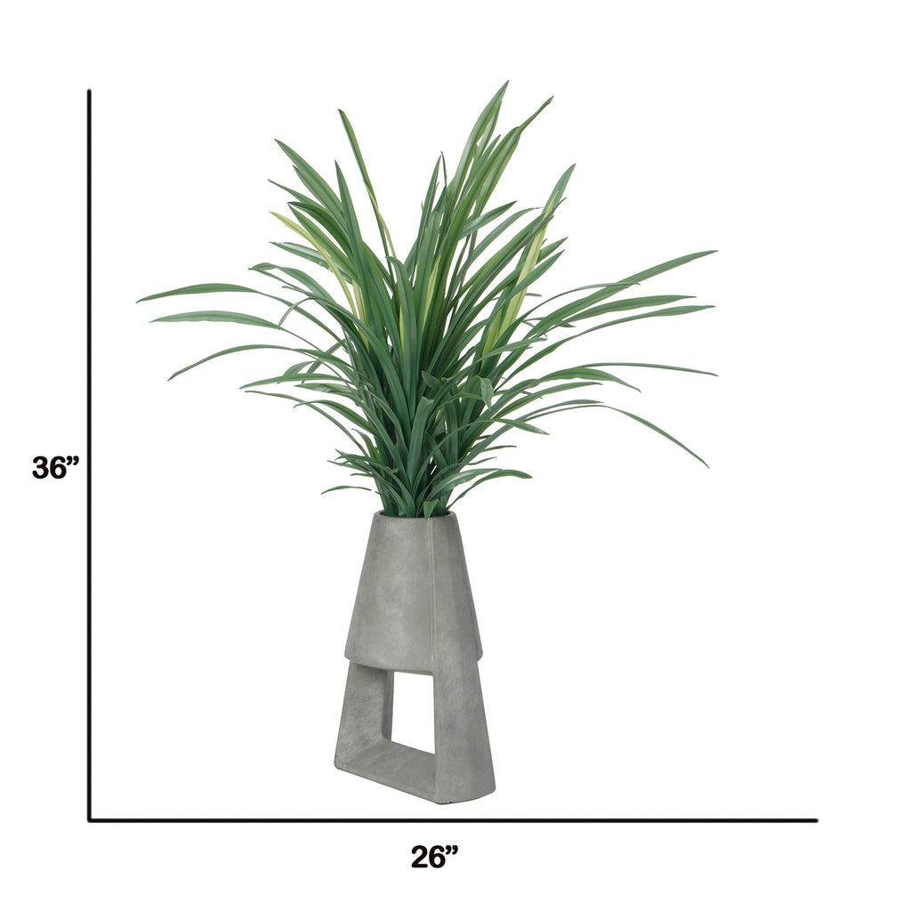 36" Artificial Faux Grass in a Grey Planter | Real Touch Fake Lemongrass in a Modern Vase