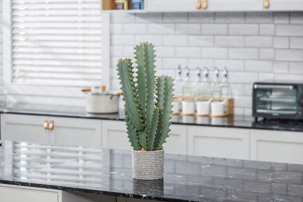 - Ideal Height: Standing at 20 inches, this faux cactus is the perfect plant for desktops, shelves and compact spaces.