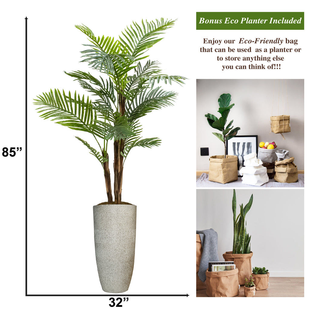 The Vintage Home brand is known for quality and distinctive design, the mark of timeless beauty and relaxed living. This palm tree will add a tropical touch to your home or office decor . Plants add a feeling of life to a room, making it warmer and more welcoming; You can decorate without concern for water damage, trimming, or soil. This high quality topiary is brought to you by Vintage Home - setting the standard in permanent botanicals,