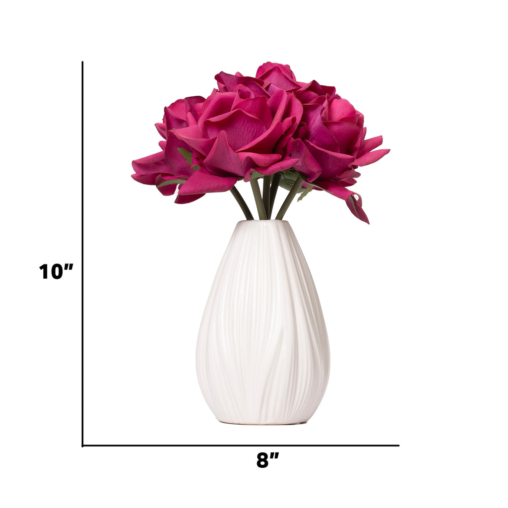 10" Purple Rose arrangement in an off-white Ceramic Vase - 3 pack