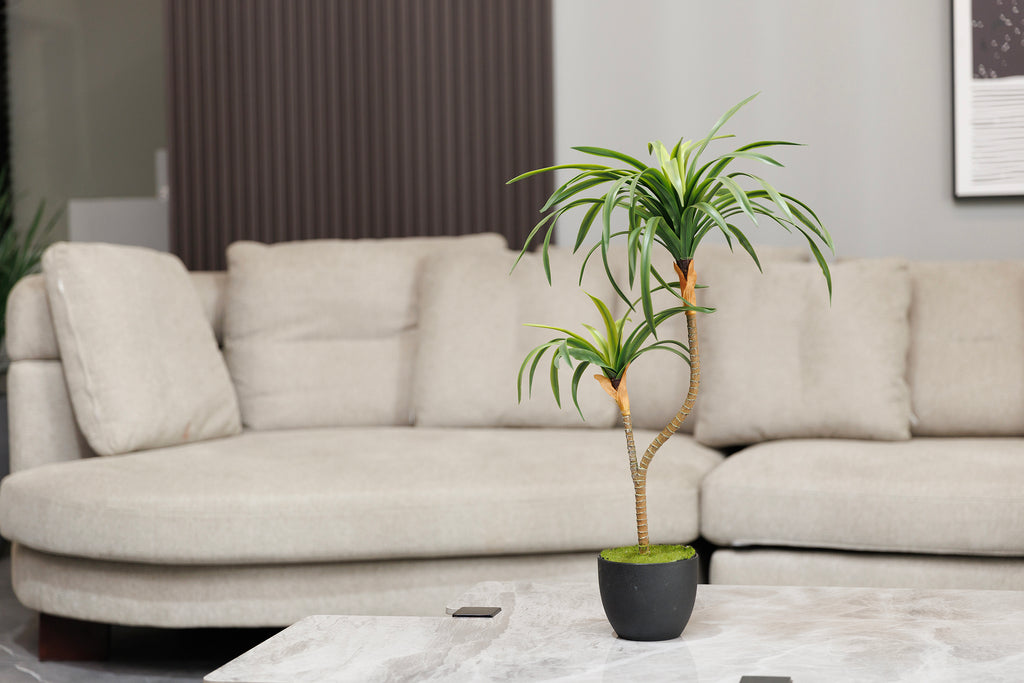 Introduce a touch of everlasting nature with our 2-Pack of indoor and outdoor artificial Dragon tree plants. These faux botanicals, standing proudly in their planter pots, exude a lifelike presence with Vintage Real Touch leaves, making them perfect for any tabletop. They require no maintenance, yet provide a vibrant, green flourish to both home and office environments all year round.